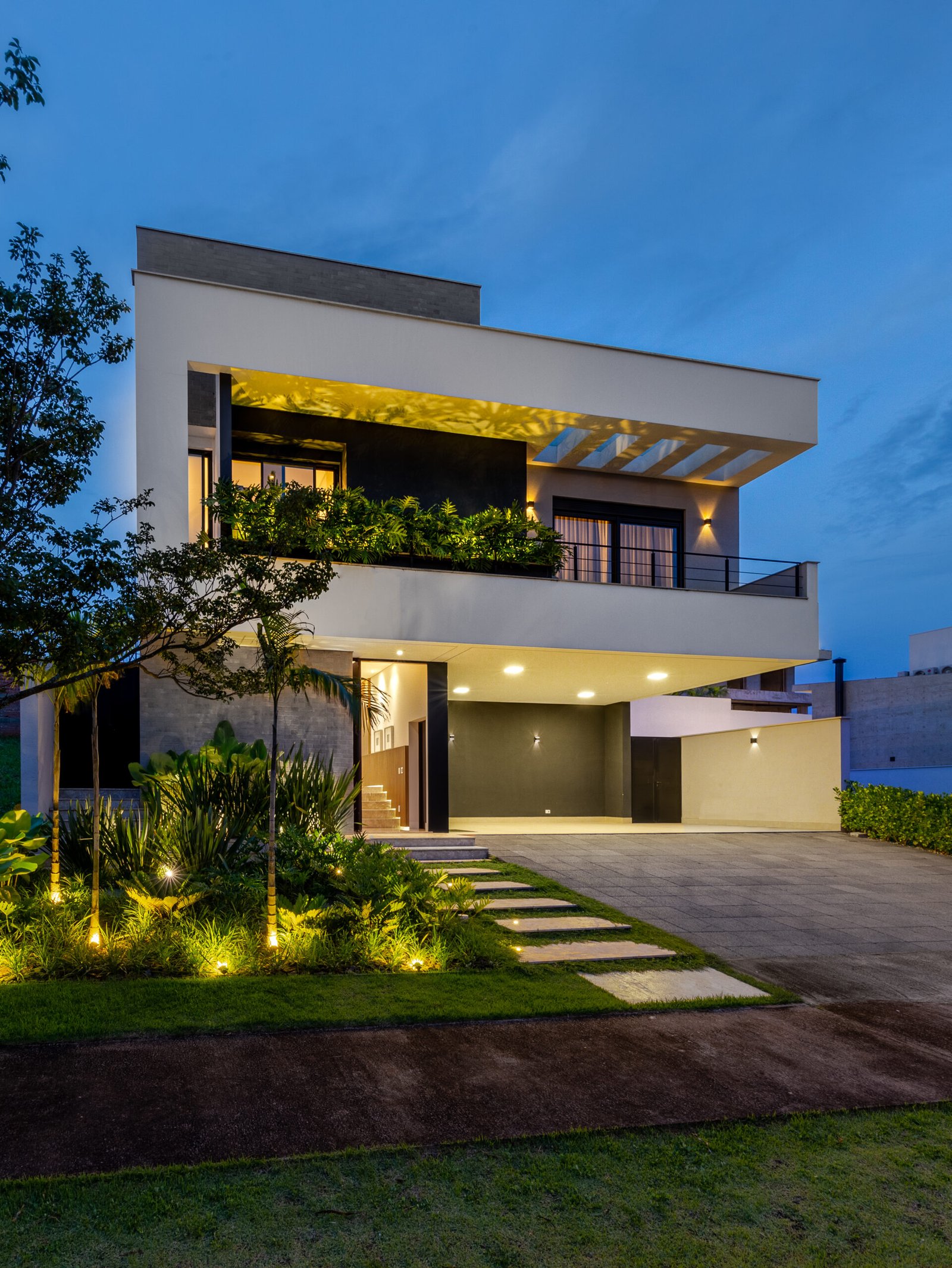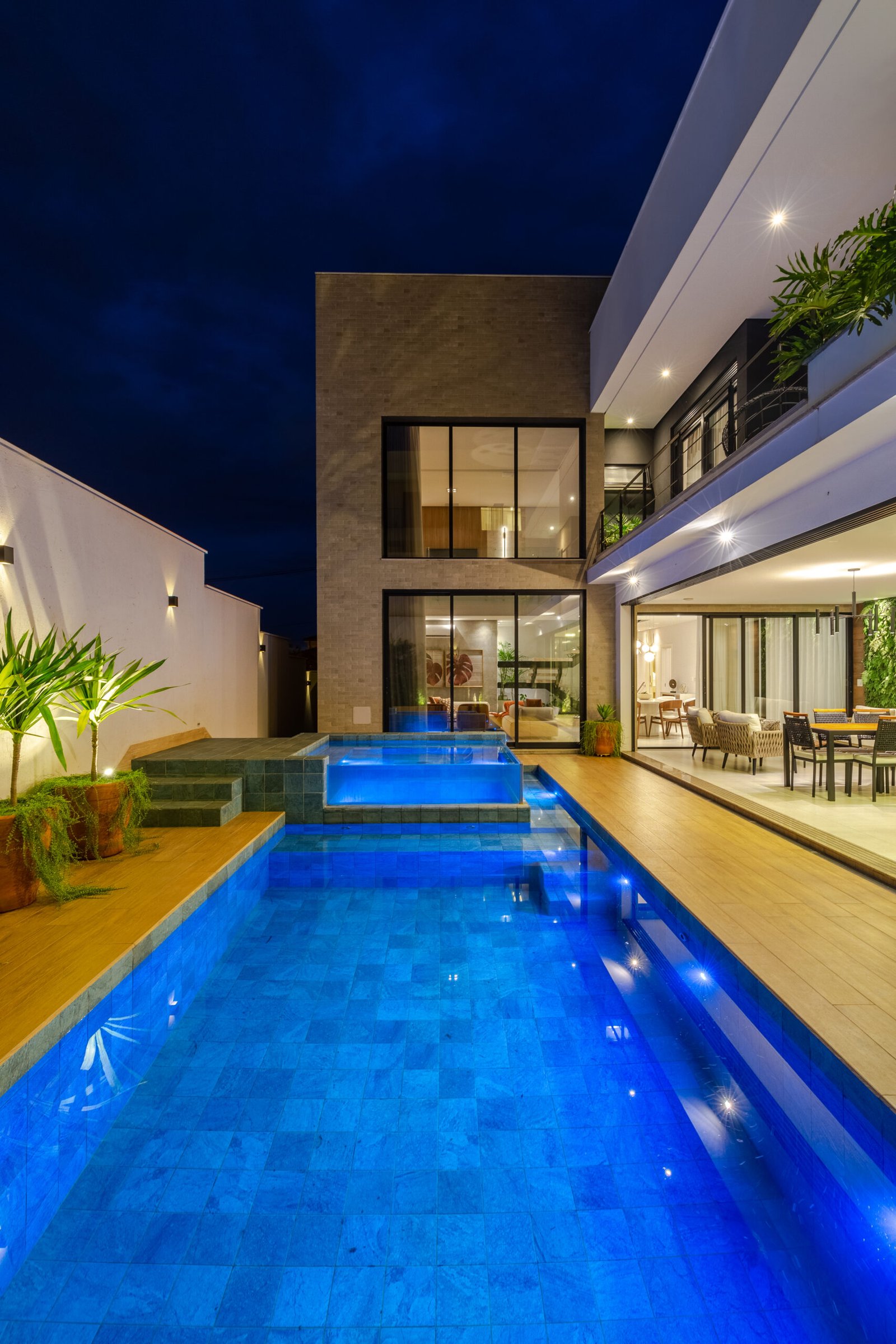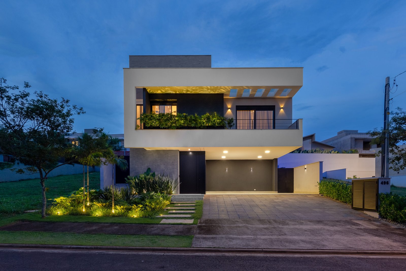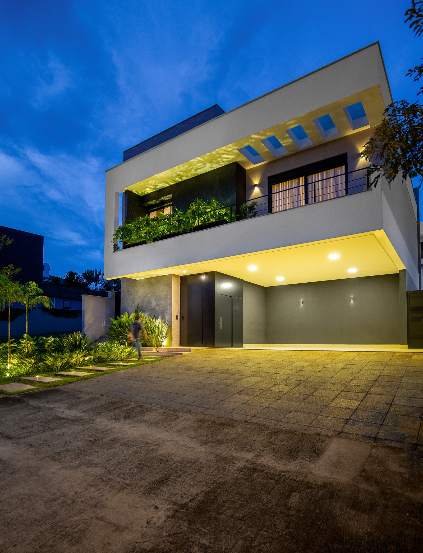 Essa residência se destaca como um exemplo notável de arquitetura contemporânea, perfeitamente alinhada às necessidades e ao estilo de vida de uma família moderna. Sua fachada, com linhas retas e volumes definidos, traduz a essência do minimalismo, enquanto a iluminação estratégica valoriza a estética e a harmonia do projeto.