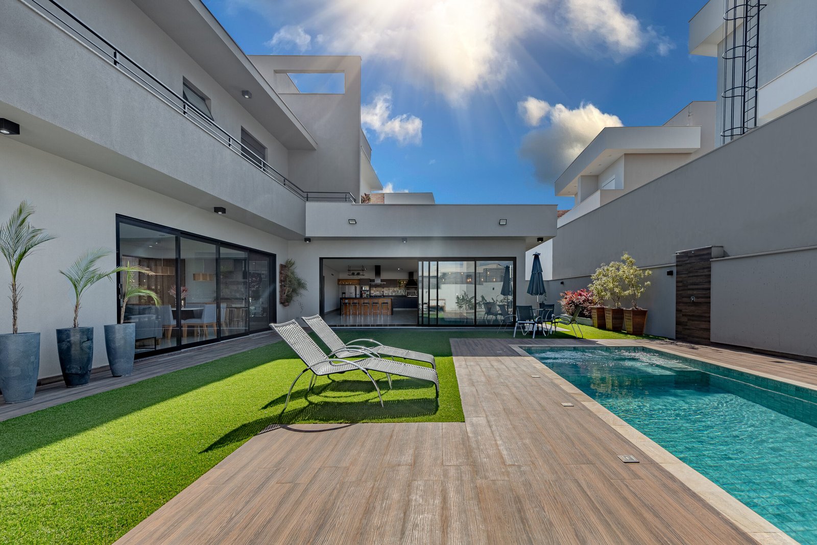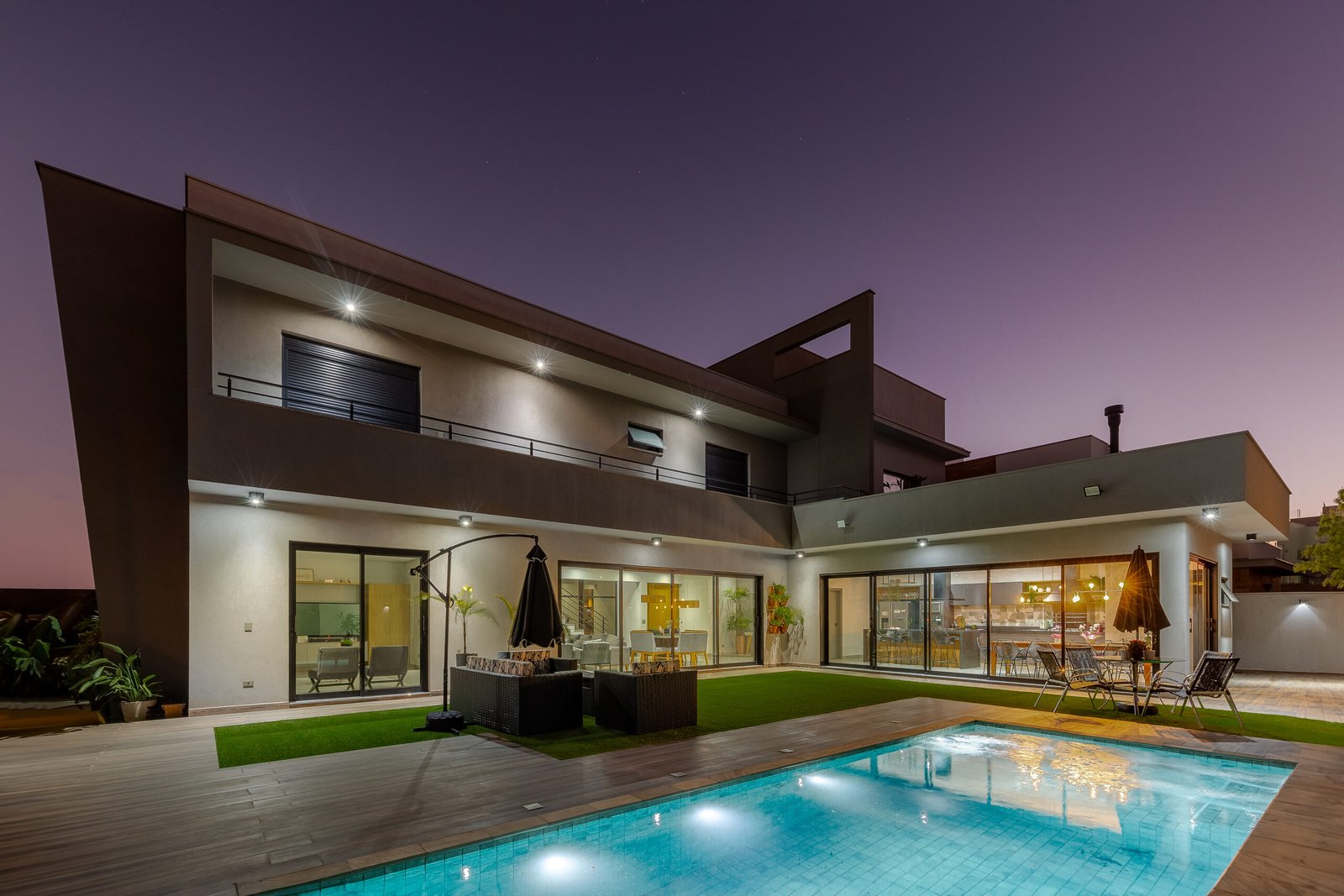 A estrutura é um jogo de volumes e planos, onde as linhas retas são quebradas por ângulos agudos e balanços. Esta residência é uma obra arquitetônica com personalidade forte, um estudo sobre a harmonia entre a natureza e a forma construída, que representa um projeto que desafia o convencional e oferece uma estética atemporal.